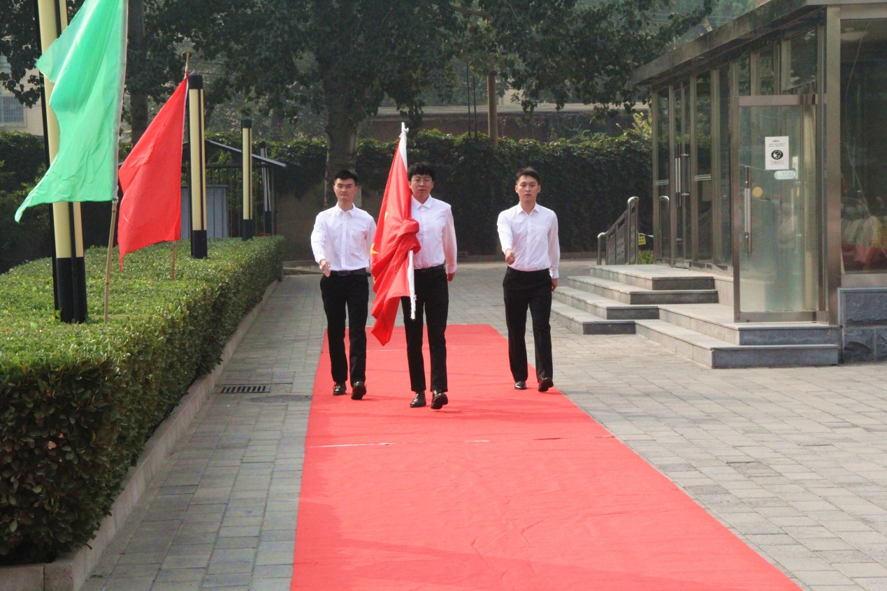 全體員工滿懷著對革命先烈的崇高敬意和對祖國的美好祝愿,莊嚴(yán)佇立,齊唱國歌,注目鮮艷的五星紅旗冉冉升起、迎風(fēng)飄揚。