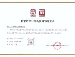 我公司榮獲2021年度“北京市企業(yè)創(chuàng)新信用領(lǐng)跑企業(yè)”及“企業(yè)綜合信用評(píng)價(jià)等級(jí)優(yōu)秀”榮...